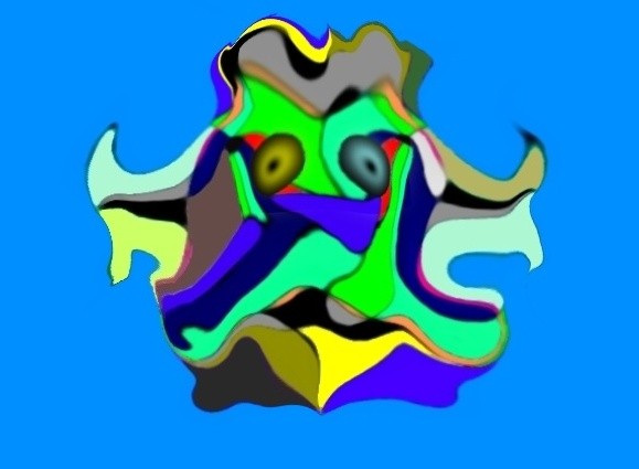 A graphic impression of an ugly mask.