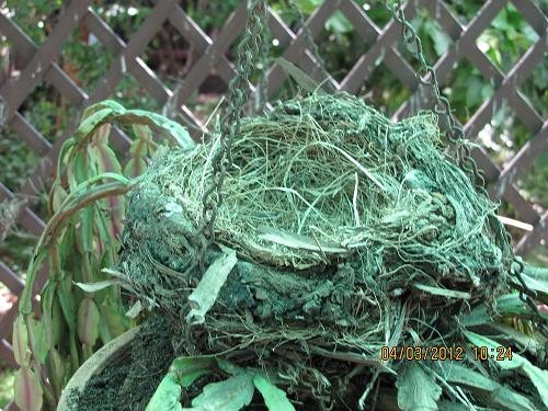 A local species of bird had built this nest in a hanging pot plant but it was abandoned because it was too close to the back door of the house where I would come out from and go back in.