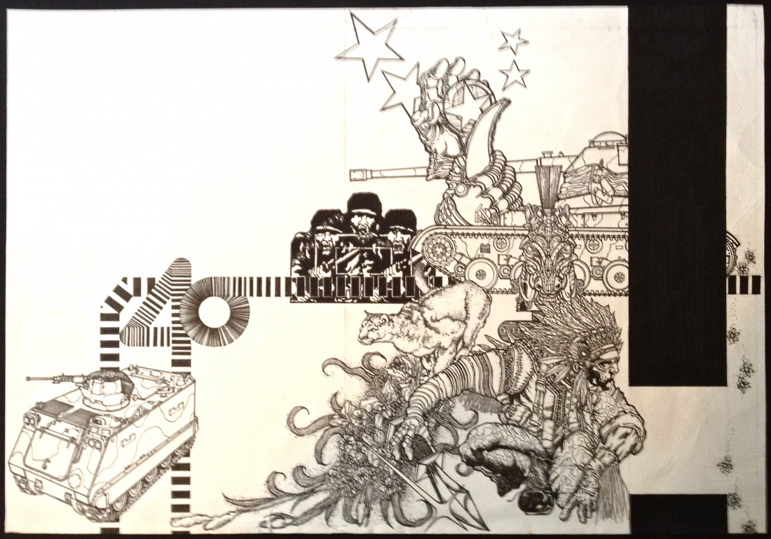 This is the original artwork I illustrated in 1992 for a wrap-around cover for a coffee-table book on the armoured regiment titled “Retrospect”. I was the editor on this book.