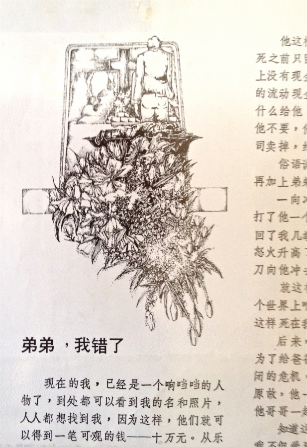 This is my illustration for a Chinese short story published in the school annual. It was drawn in 1986.