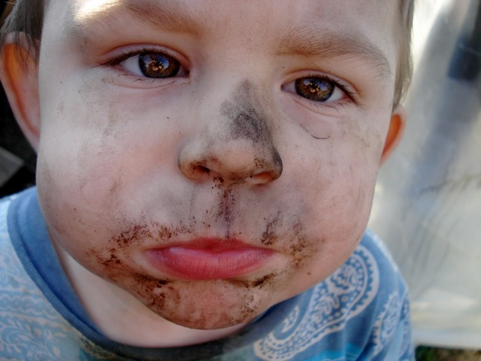 Brak głowy był zamierzony, chodziło mi wyłącznie o brudną buzię Adasia :)