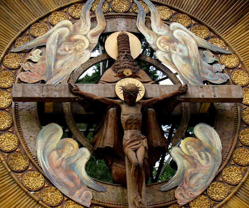 Duch Święty jest. niewidoczny, albo w tych dymach nad skrzydłami aniołów. jestem ateistą, nie chciałbym obrażać bozi, bo sie Pan Nowak mną zajmie (sic ) ale ...to za plecami Ojca mi przypomina ster.