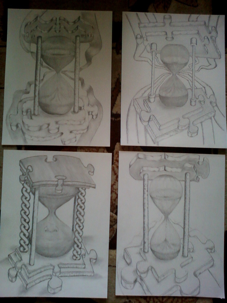 tematyczna seria rysunków: wszystkie ołówkami od H do B + ołówek węglowy