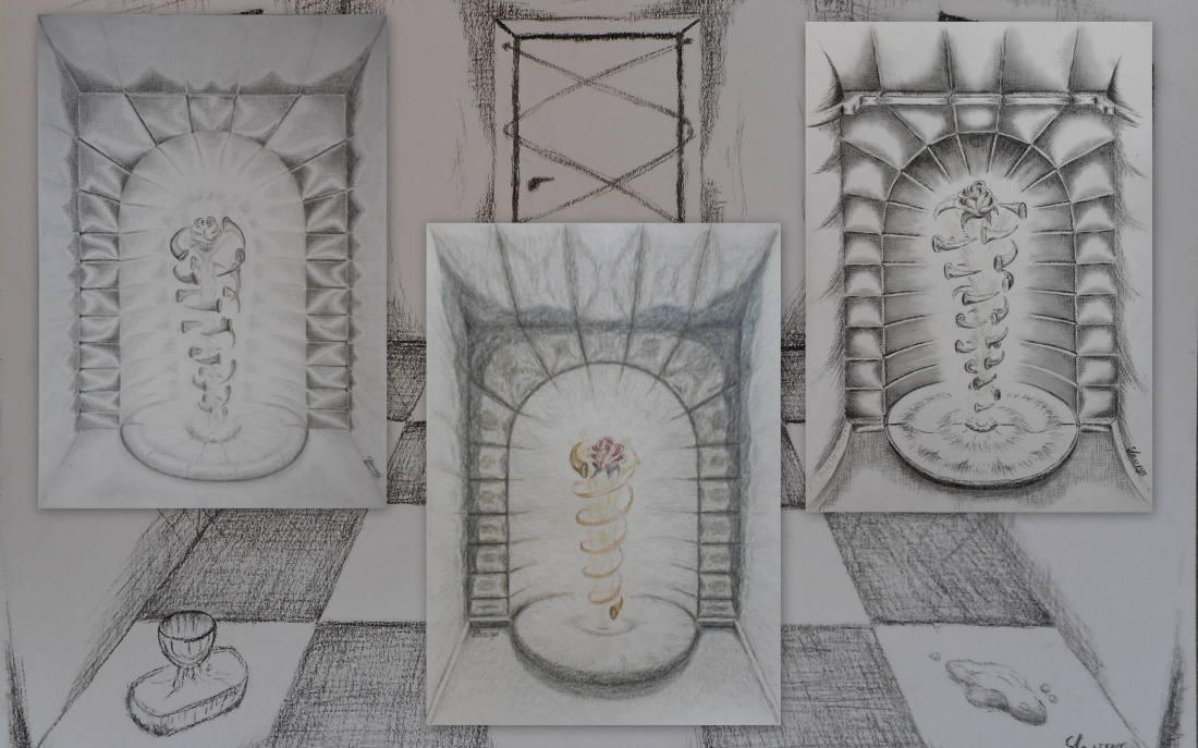 pierwsza część serii; prace wykonane ołówkami: tradycyjne, węgiel, graphitint