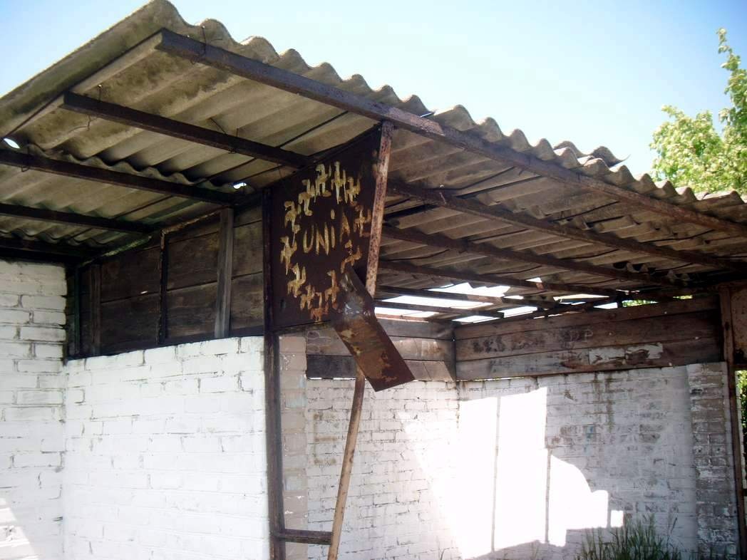 Pojawiło się to-to na przystanku przed referendum akcesyjnym :) Obecnie zżera je rdza. Pewnie ,,malarz" miał moherowy beret na główce i przenośny odbiornik Radia M... w kieszeni :))))))