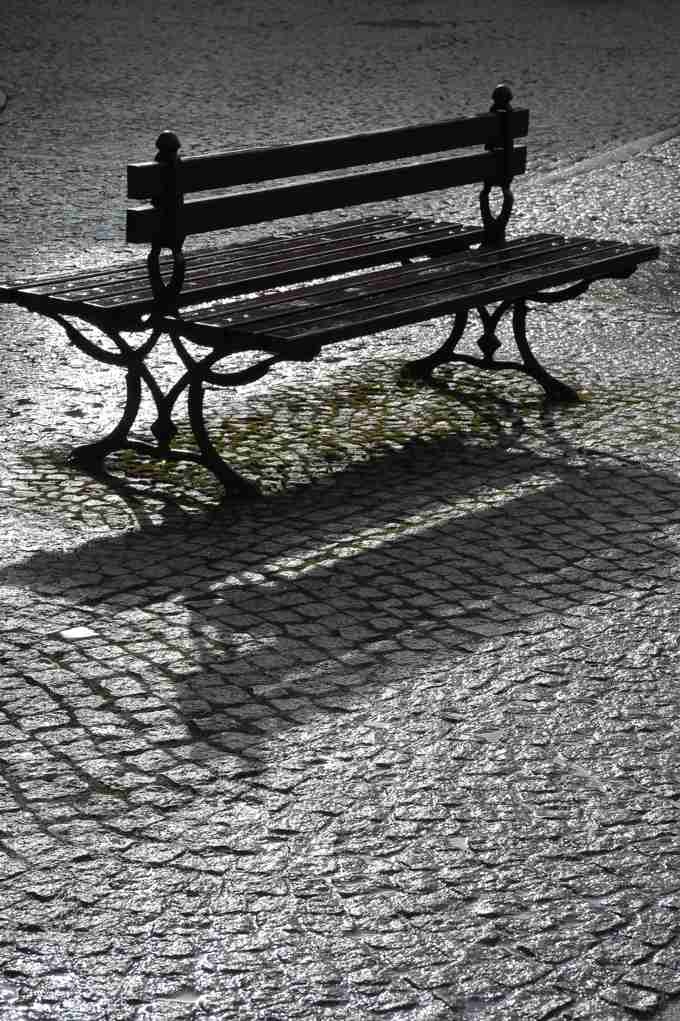 ciekawe proporcje ma to zdjęcie, mnie nasuwa skojarzenie, że mam patrzeć pod stopy, żeby się nie poślizgnąć lub nie potknąć, a wtedy minę ławkę nie poświęcając jej uwagi i nawet przez myśl mi nie przemknie ze mogłabym się na niej zatrzymać. Mam wrażenie, że jesteśmy już wszyscy tak stęsknieni do słońca, że taka ławka wygląda zapraszająco, a przecież równie dobrze mógłby być to skwarny dzień, kamienie rozpalone prawie do białości, brrr! nic dziwnego, że nie ma chętnych. Tak, czy siak "poszukując ciszy" zupełnie nie jet tytułem dla mnie otwierającym ten obraz. Pozdrawiam :)