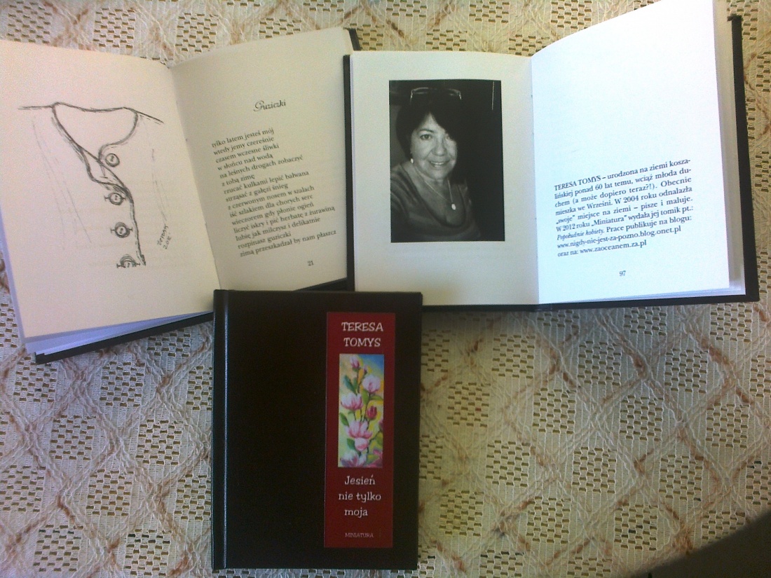 Jesień nie tylko moja Mój drugi tomik: Jesień nie tylko moja. Wydanie pierwsze. Wydawnictwo Miniatura Kraków ISBN: 978-83-7606-511-3 publisher: Wydawnictwo Miniatura Kraków year: 0 |