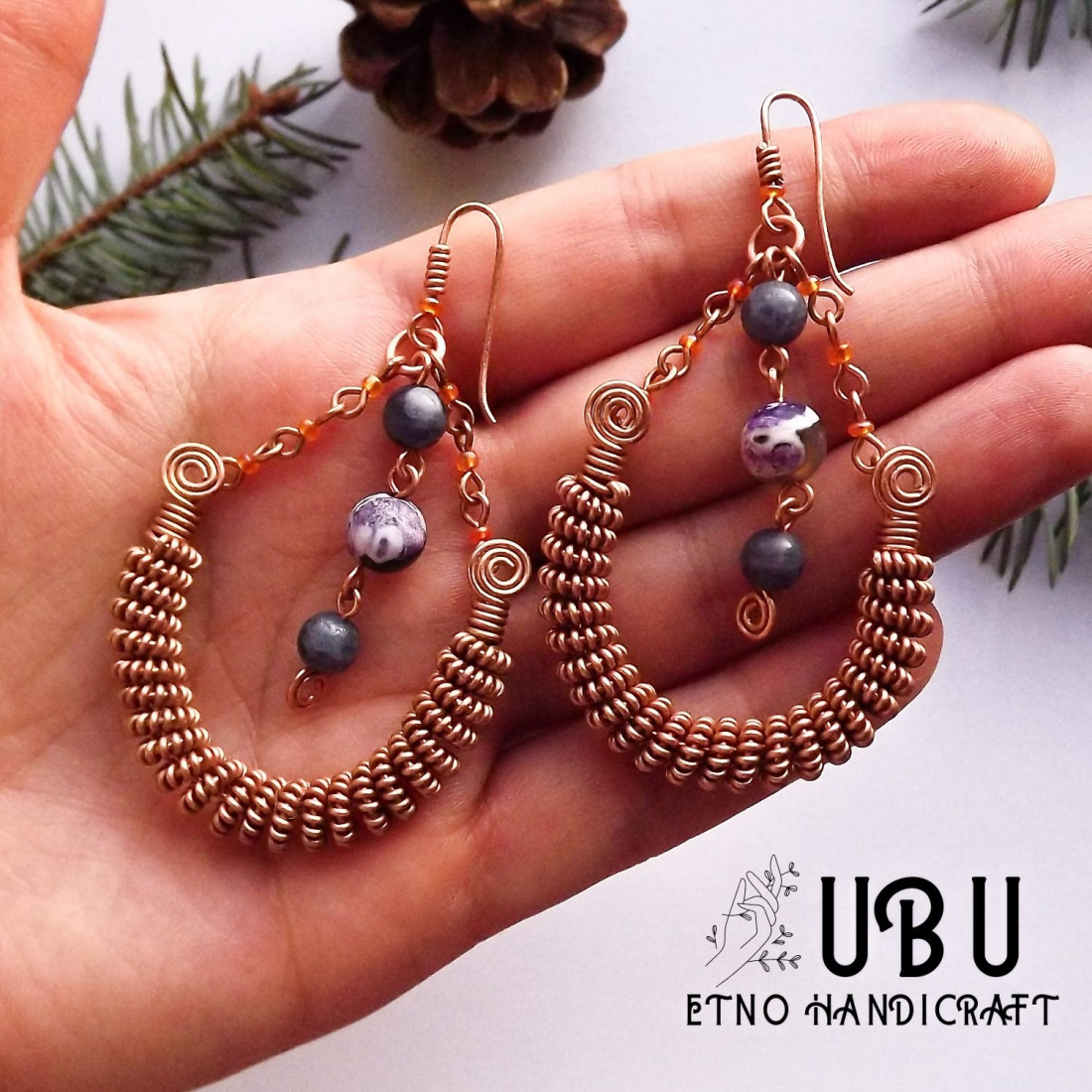 miedziane kolczyki z iolitami i agatami/ starożytnęło i celtnęło mi się nieco