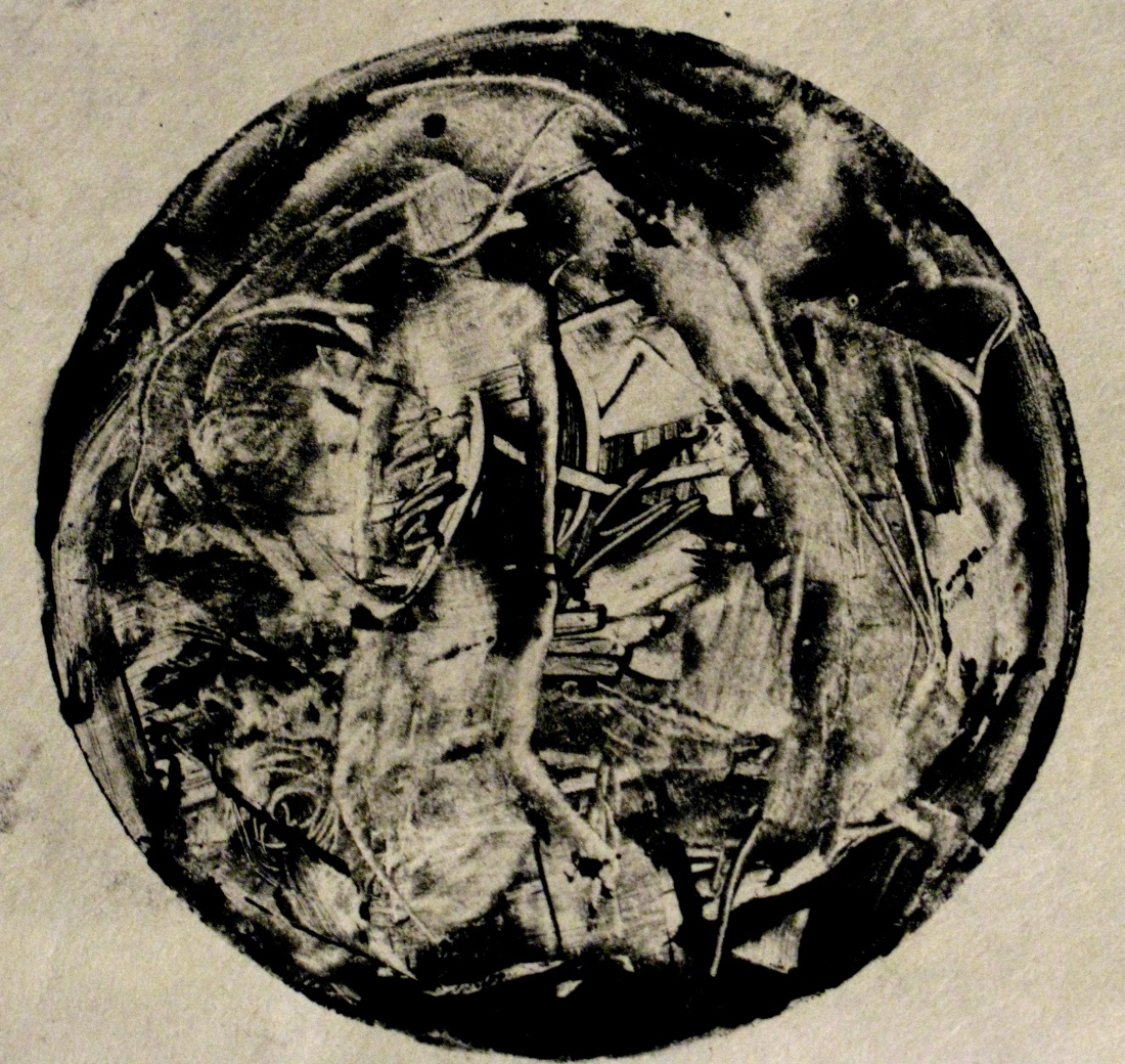 monoprint from a copper plate 4" in diameter printed on Kitakata Japanese handmade paper