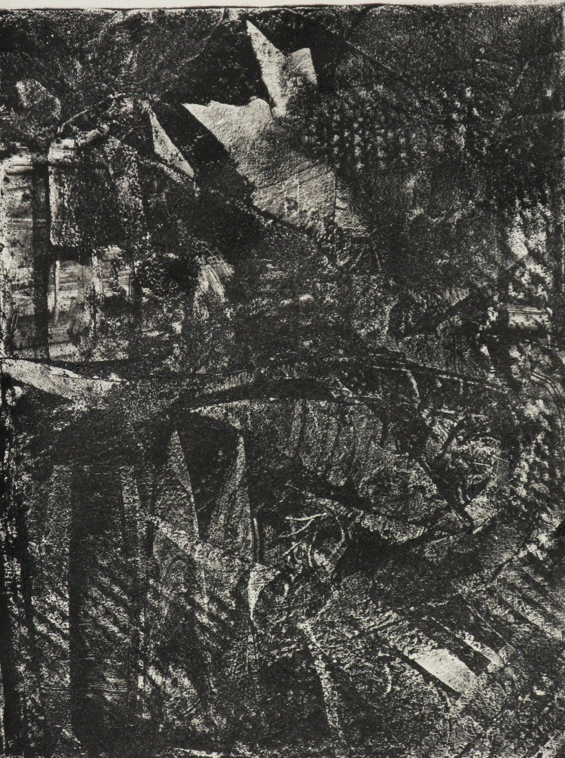 this is a monotype printed from a deeply etched zinc plate. ink: Old Handshky Litho ink which I reduced for flow. paper: Magnani Pescia Italian printmaking paper. This is an Homage to Japan, suffering the worse nuclear disaster in history.