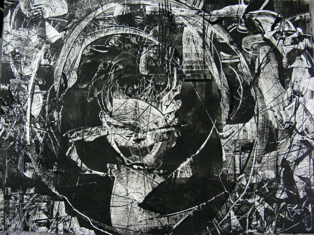 monoprint / collagraph print Handschy Litho Roll Up black ink on Lana Gravure French printmaking paper