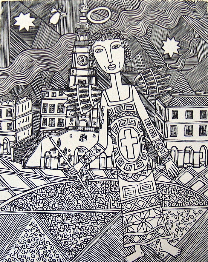 Anioł na tle zamojskiego ratusza