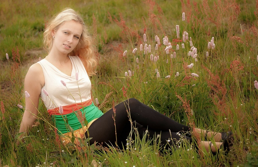 tak sobie pomyślałam że gdyby dziewczyna miała na sobie zwiewną - jasną spódnicę albo sukienkę w jasnych kolorach i była w tej pozycji, w tym miejscu, z tym spojrzeniem i obok rosłoby to co rośnie - byłabym zadowolona bardziej:) co nie znaczy że to jest uwaga - to tyylko gdzieś w podświadomości widzę ją taką:) bardzo udane ujęcie:) pozdrawiam