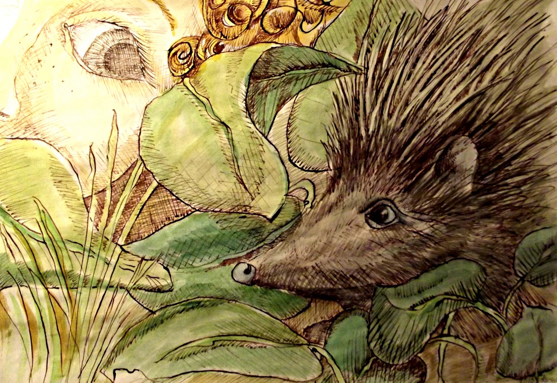 rysunek piórkiem plus akwarela