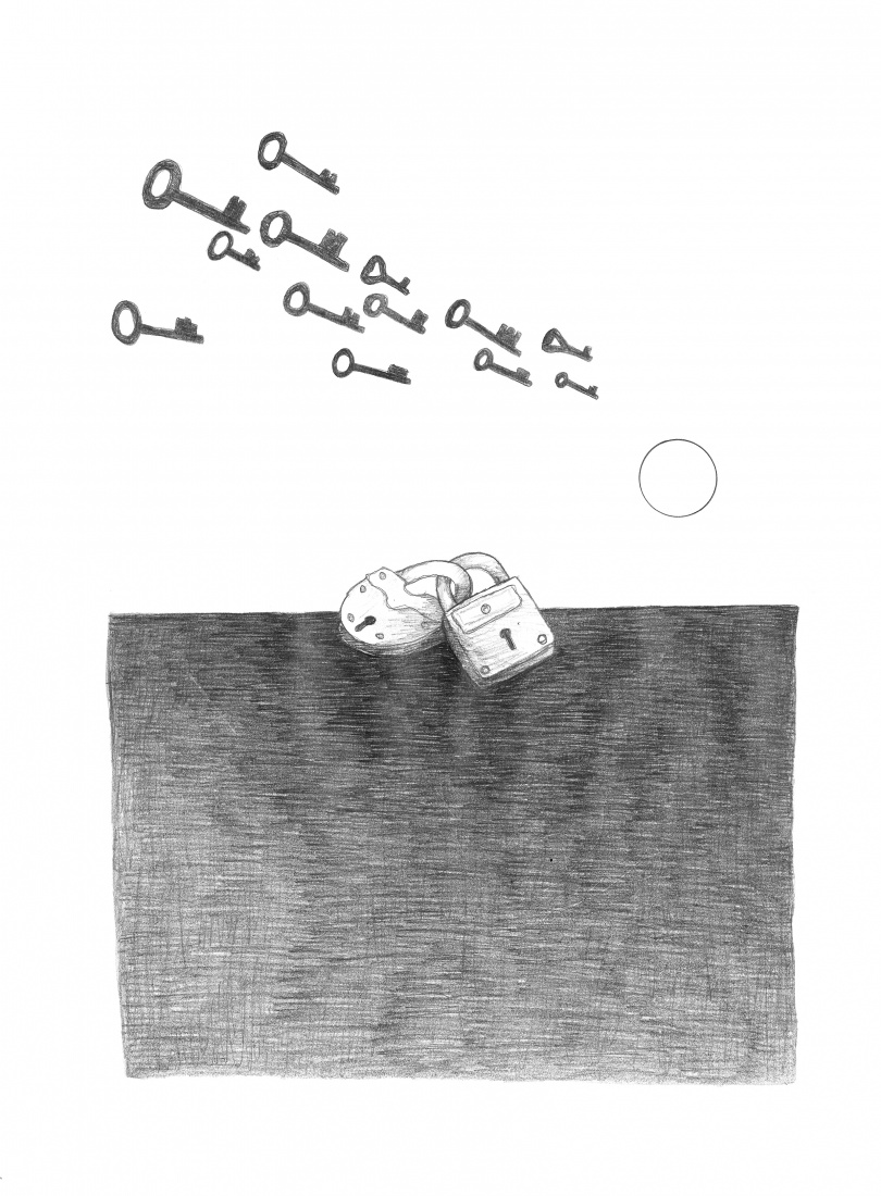 [rysunek ołówkiem, ilustracja do książki "W miłości chodzi o wszystko" autorów: Marzena Bruś i Jarosław Kapłon]