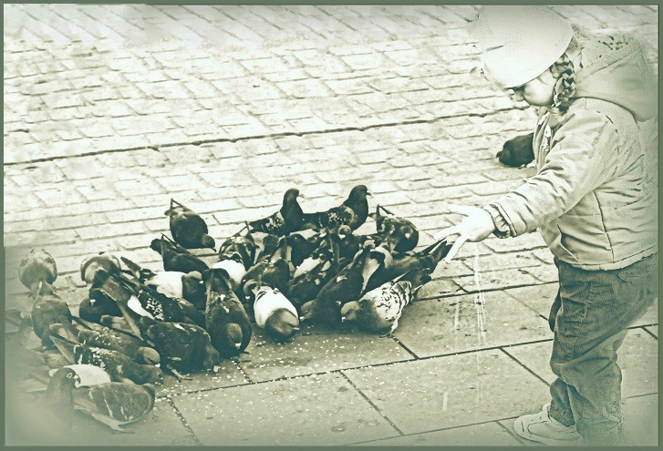 ona chyba nie tyle dokarmia, co rzuca ziarno - rozumiem, rzucanie ziarna JEST pasjonujące:) rzucanie w ogóle:) i obserwowanie jak leci, leeeeeci:)
