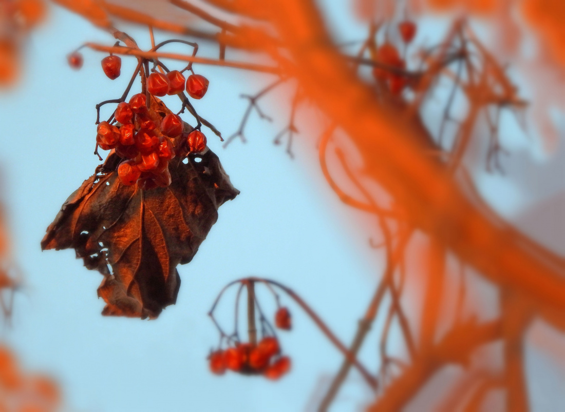 U mnie sikorki uwijają się na łozie, bo już bazie ma :)) Kalinę koralową lubią gile, jemiołuszki, dzwońce. Natomiast tego roku przymrozki wykosiły kwiatostany i w okolicy nie ma jej prawie wcale. Dlatego i te ptaszki są nieobecne :)