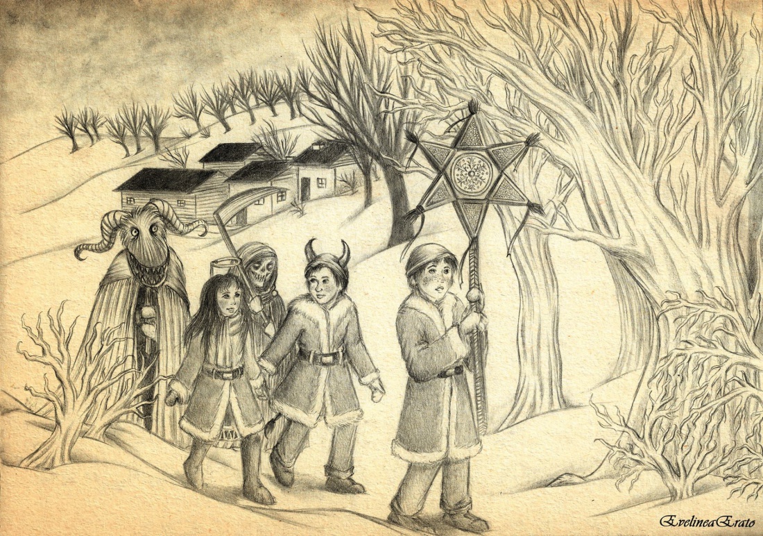 Kolędowanie – grupy kolędników odwiedzały poszczególne gospodarstwa z życzeniami pomyślności w Nowym Roku za co otrzymywały od gospodarzy dary w postaci jedzenia lub drobnych datków pieniężnych. Terminem kolęda określano dawniej zarówno sam obrzęd, jaki i podarunki składane kolędnikom, a także śpiewane przez nich specjalne pieśni życzące. Jest to stary zwyczaj, sięgający czasów przedchrześcijańskich, wiązany z obchodami Święta Godowego. Koleda (Koliada) - is an ancient pre-Christian winter ritual/festival. It was later incorporated into Christmas.