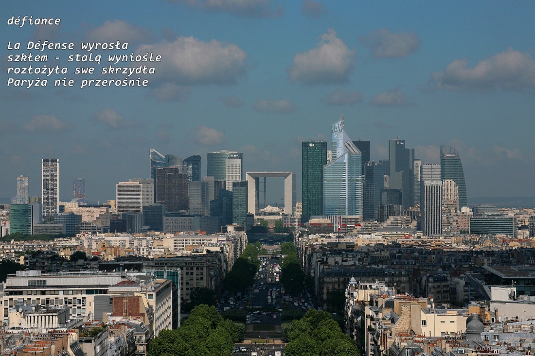 Skokiem z Arc de triomphe de l’Étoile lotem nad avenue de la Grande-Armée aż do samej Grande Arche de la Fraternité lecieli Wieśniak z jeśli tylko :)