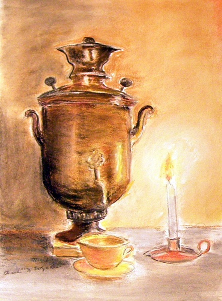 Pastel suchy na kartonie. Zapraszam na zimową aromatyczną herbatkę :) Soft pastel on cardboard. Please join me for a cup of good aromatic tea )