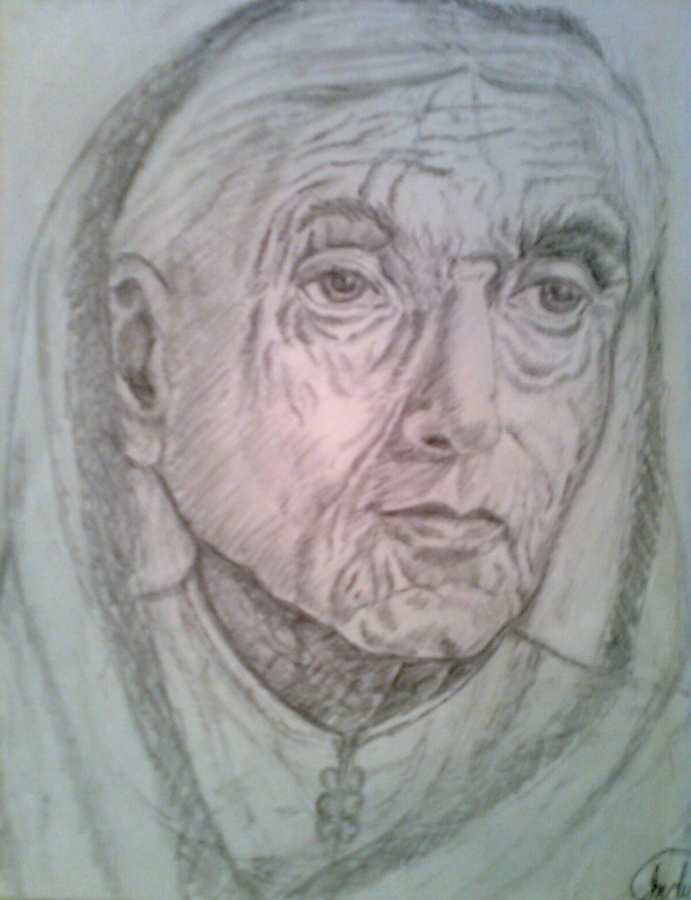 Pencil sketch by Indira Mukherjee.