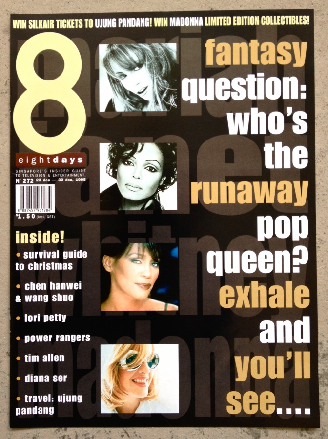 8 DAYS: Music Divas Cover This is the magazine cover of the issue in which my cover story, “Clash of the Divas”, was published. This is a trend story and music profile of pop stars Janet Jackson, Madonna, Mariah Carey, and Whitney Houston. 8 DAYS is the best-selling English magazine in Singapore, known for its showbiz and lifestyle news, providing the latest in food, shopping, health and wellness, along with authoritative movie reviews, TV and music features. ISBN: NA wydawca: Mediacorp Publishing rok: 1995 gdzie można kupić: Out of Print sklep internetowy: http://www.mediacorp.sg/en/corporate/print |