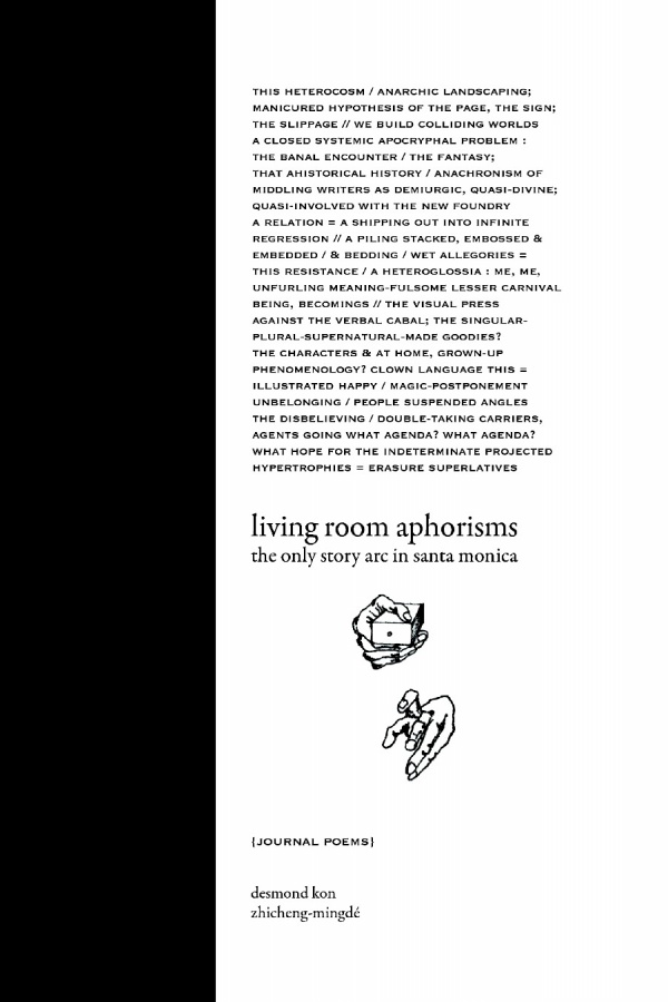 Living Room Aphorisms This book, titled “Living Room Aphorisms: The Only Story Arc in Santa Monica”, functions primarily as a journal with inclusions of literary quotations, illustrated motifs, and a chapbook-length suite of poems. The poems straddle the aphoristic and epiphanic. ISBN: NA wydawca: Lulu Publishing rok: 2007 gdzie można kupić: Out of Print sklep internetowy: http://www.lulu.com/shop/pirenes-fountain/sunrise-from-blue-thunder/paperback/product-18777045.html |