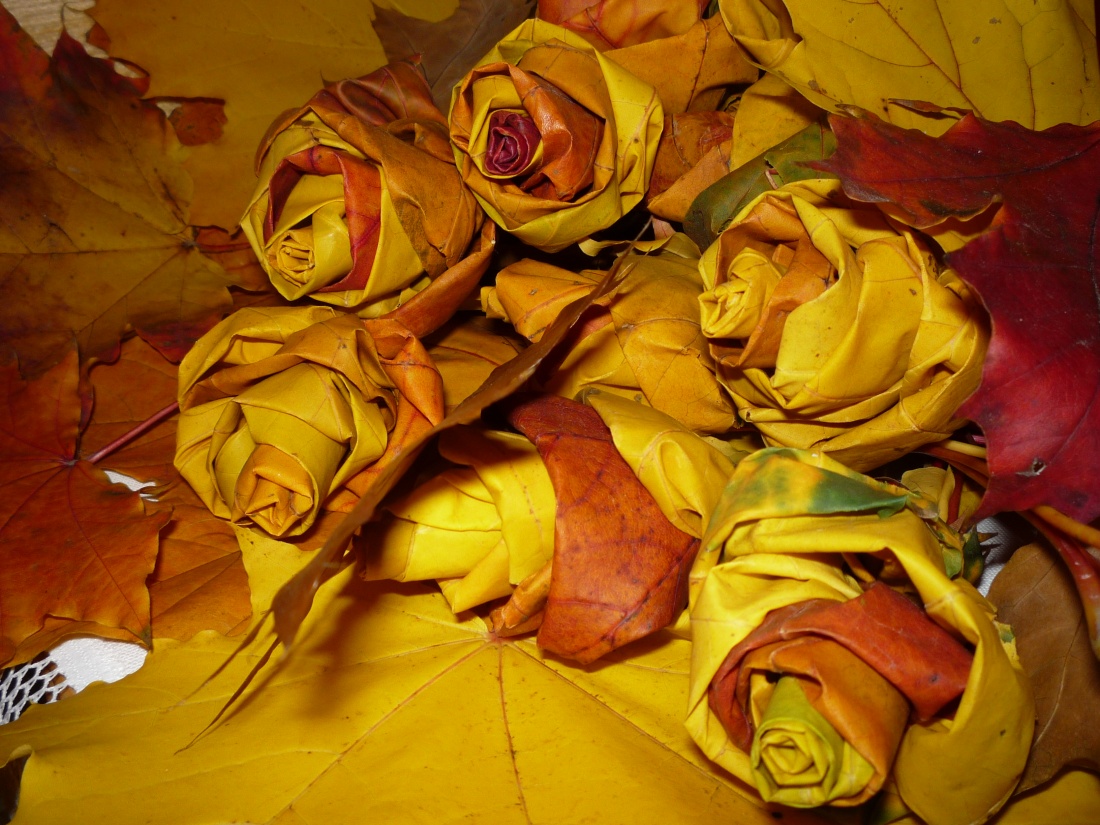Róże zrobiłam dzisiaj z różnokolorowych listków klonu:)
