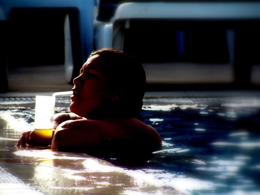 Do modelki nic nie mam, Zaskoczyła mnie szklanka. Kadr "pstryknięty" jak w fotografii sportowej, wręcz widzę basen olimpijski, a tu nagle nocne przyjęcie z drinkami. Kontrast, który mnie powstrzymuje. Zmysłowości żadnej nie dostrzegam. Jej twarz napięta jak po dużym wysiłku, ciemna postać zajmuje większość kadru i mimowolnie narzuca "masywność" gdy szukam kobiety. Pozdrawiam.