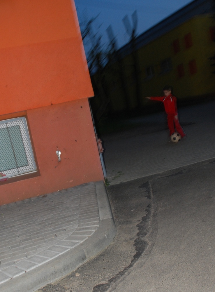 Ciemnawo już, cicho się robi. Idę opustoszałym boiskiem szkolnym... a tu stoi nieruchomo i zaklina piłkę i ścianę. On naprawdę z nimi rozmawiał. Ale się przestraszyłem...