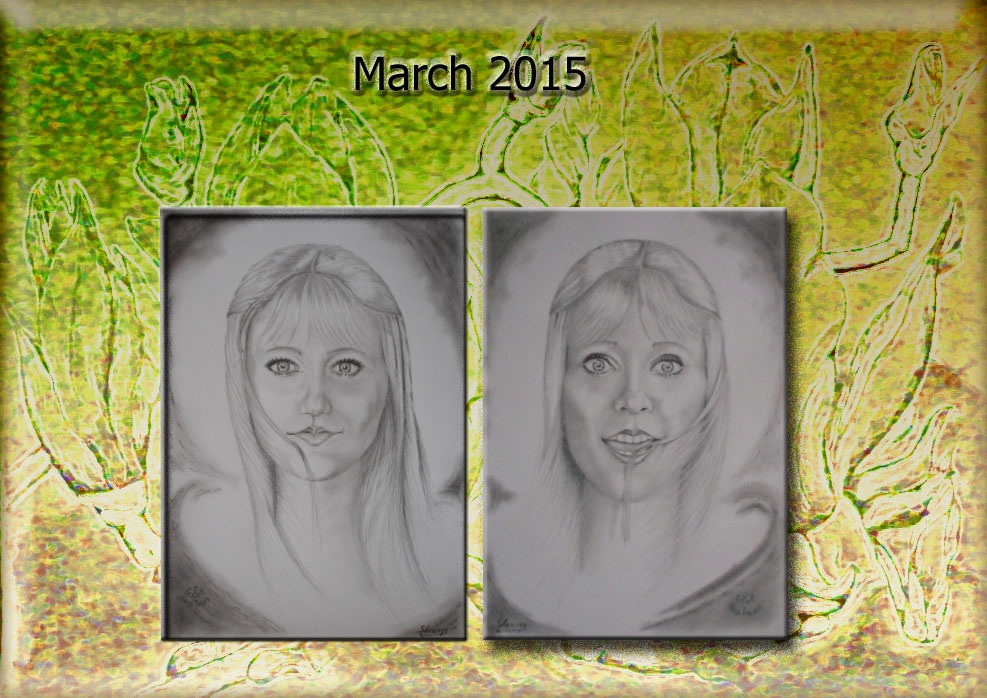 portrety harfistek wykonane ołówkami; tło: rysunek po przejściach komputerowych!