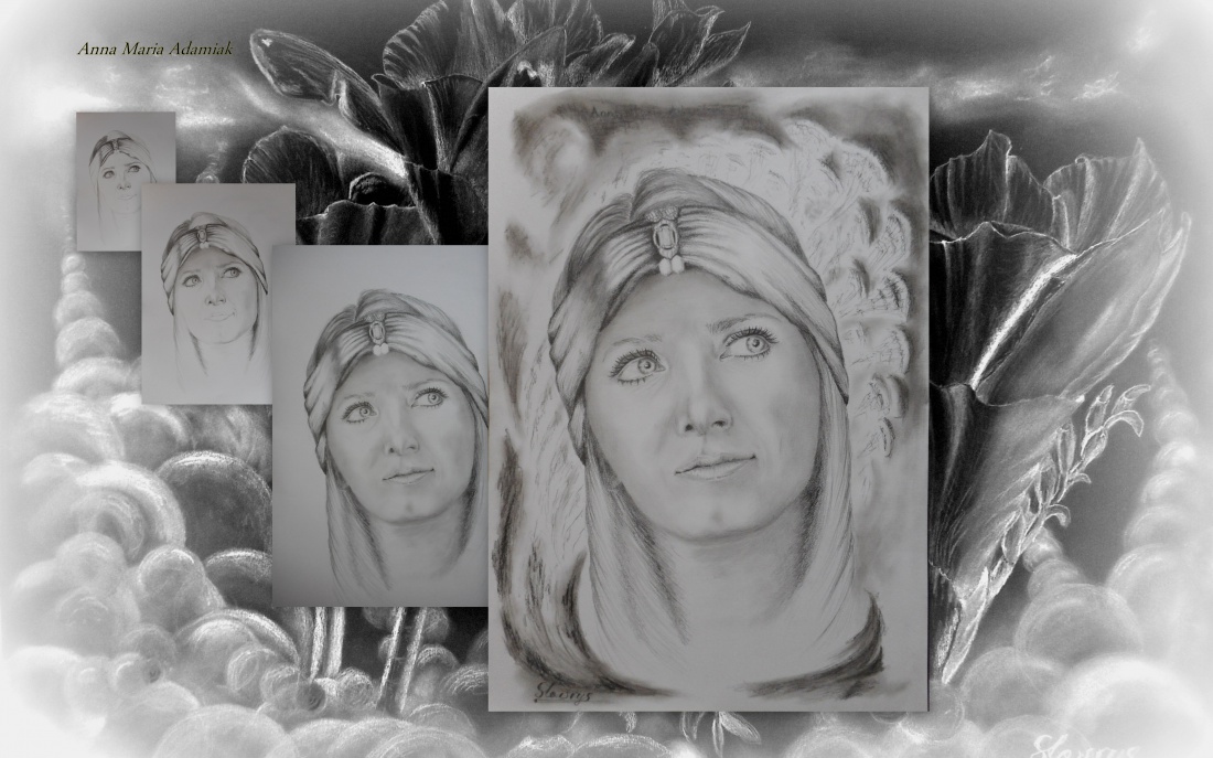 kolaż z powstawania portretu wykonanego ołówkami