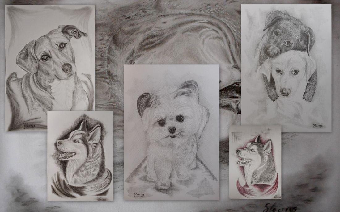 kolaż replik fotograficznych rysunków ... takie: psim spojrzeniem!!!