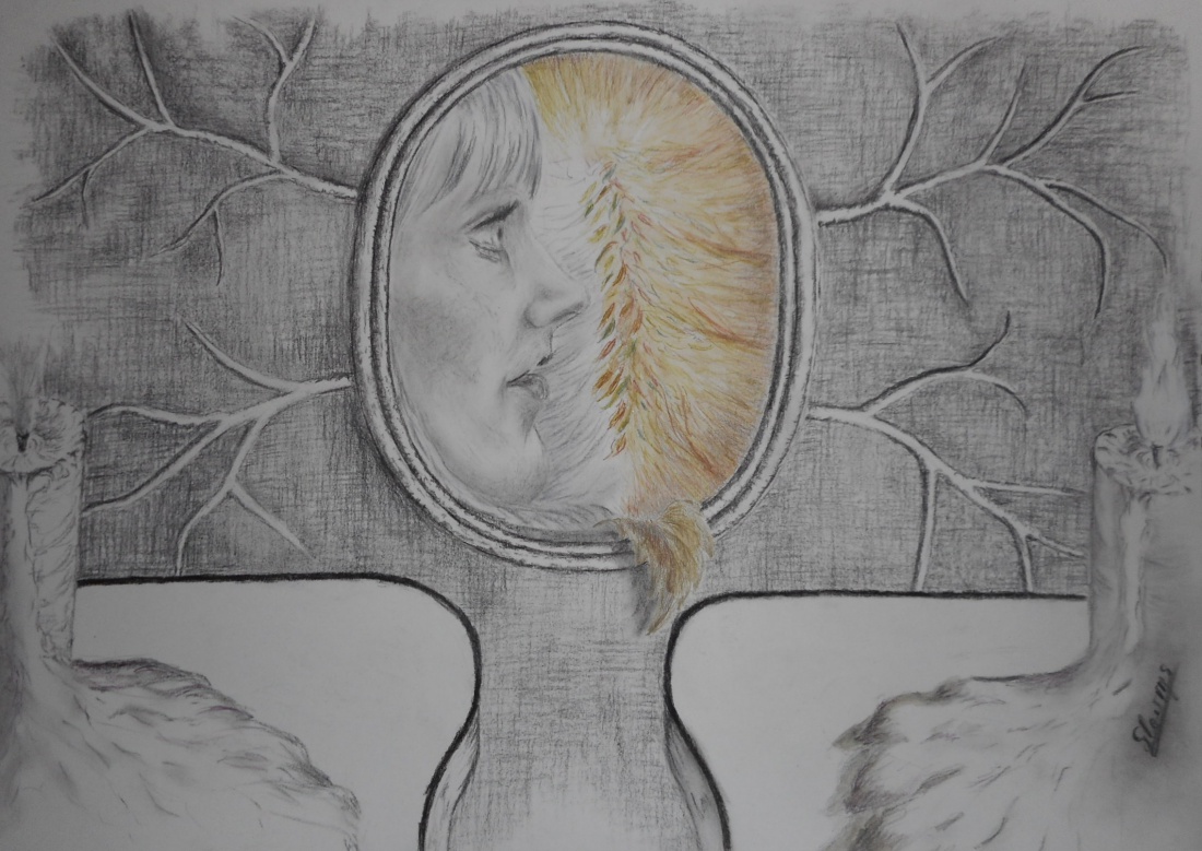 taka praca 3D ... wykonanie ołówkami węglowymi i kolorowymi graphitint ... nie grafika ale taki rysunek przestrzenny!