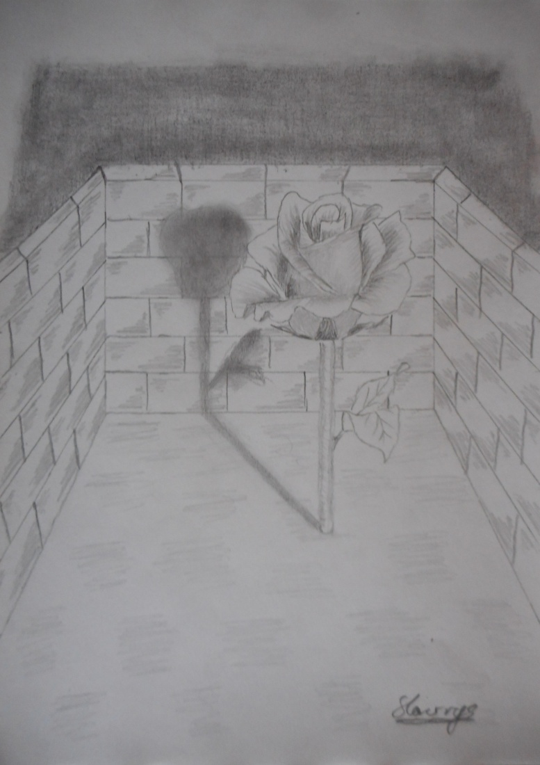 ilustracja do wiersza "zaułek ciszy" papier A4 90g/m2 ołówki 2H do 8B kompozycja własna