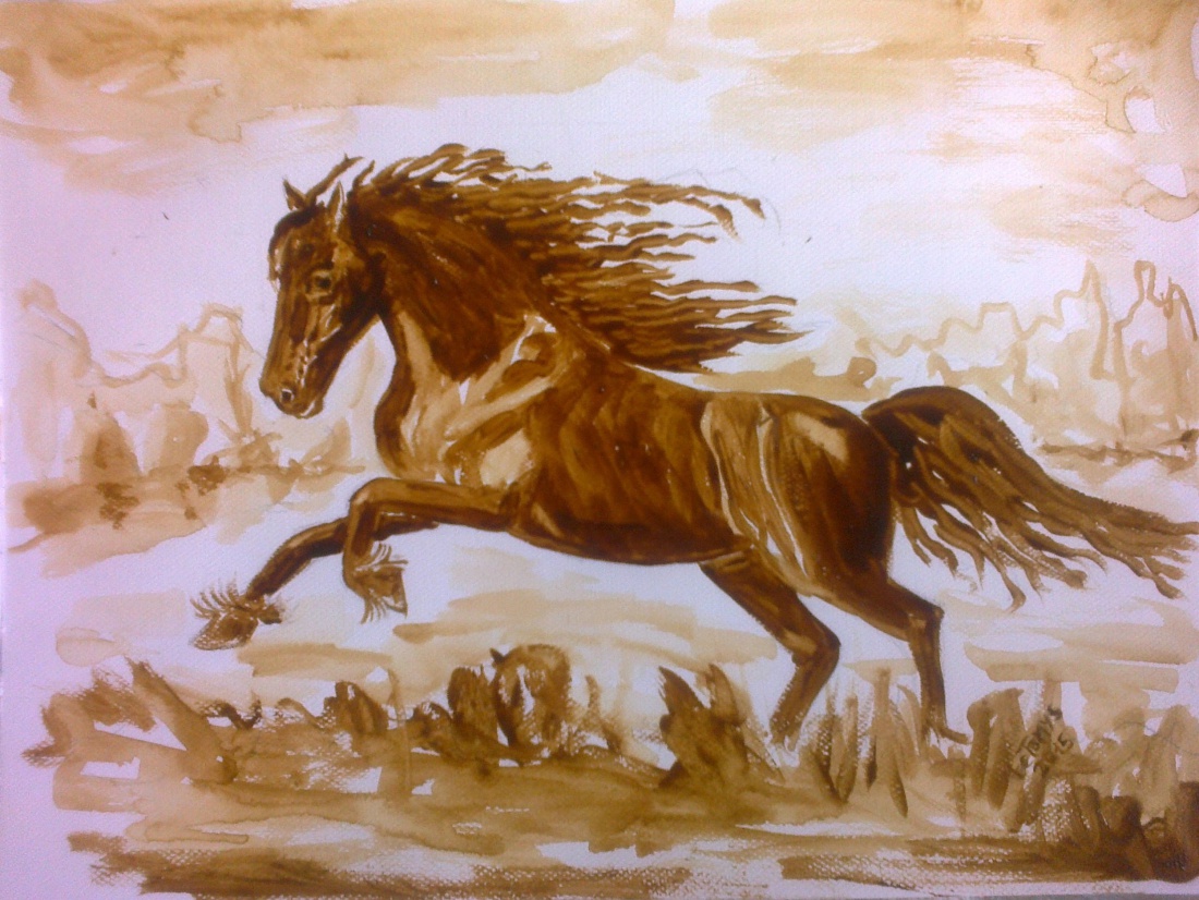 kolejny koń malowany kawą A3
