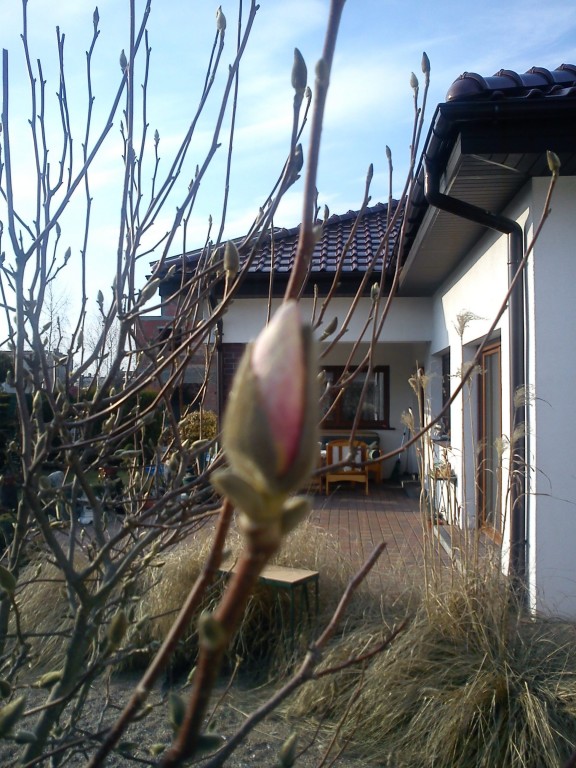Pierwszy, zabarwiony kolorem kwiat magnolii 24.03.2012