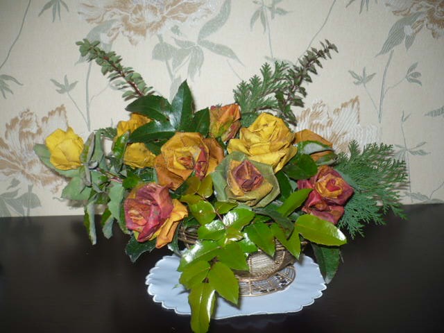 Róże zrobione z liści klonu