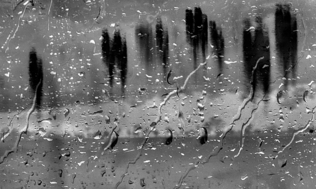 świat rozwodniony akwarelą/ w szarościach toną czarne cienie/ na części krople deszczu dzielą/ niedokonane wydarzenia//