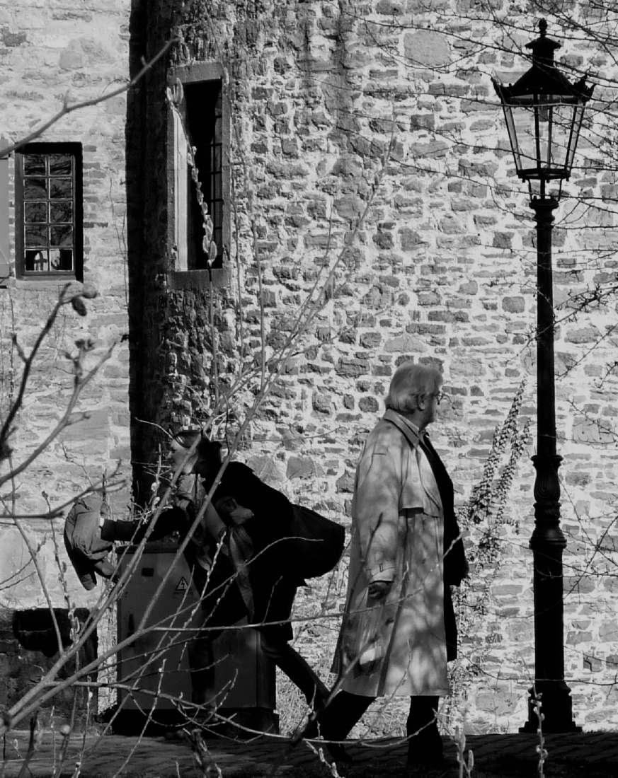 nieco kontrastowo: stare mury i szafka elektryczna - siwy mężczyzna i zwinna brunetka :)