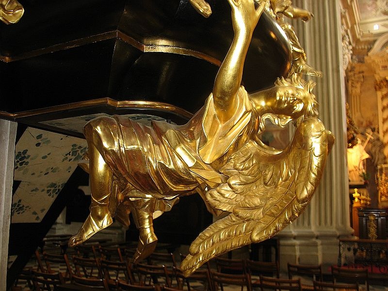 chcę wyjaśnić, nie ma tam kpiny tylko podkreślenie, że ozdoby w kościele nie koniecznie są ascetyczne. Ten anioł jest pięknym postawnym młodzieńcem i taki cieszy oko, gdy oderwie się od duchowych uniesień.