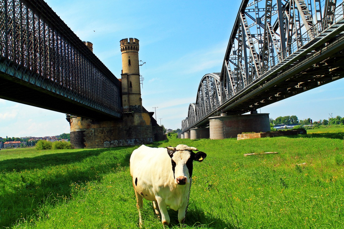 na terenie zalewowym po stronie Lisewa Malborskiego - widok na dwa mosty (kolejowy i nieczynny samochodowy)