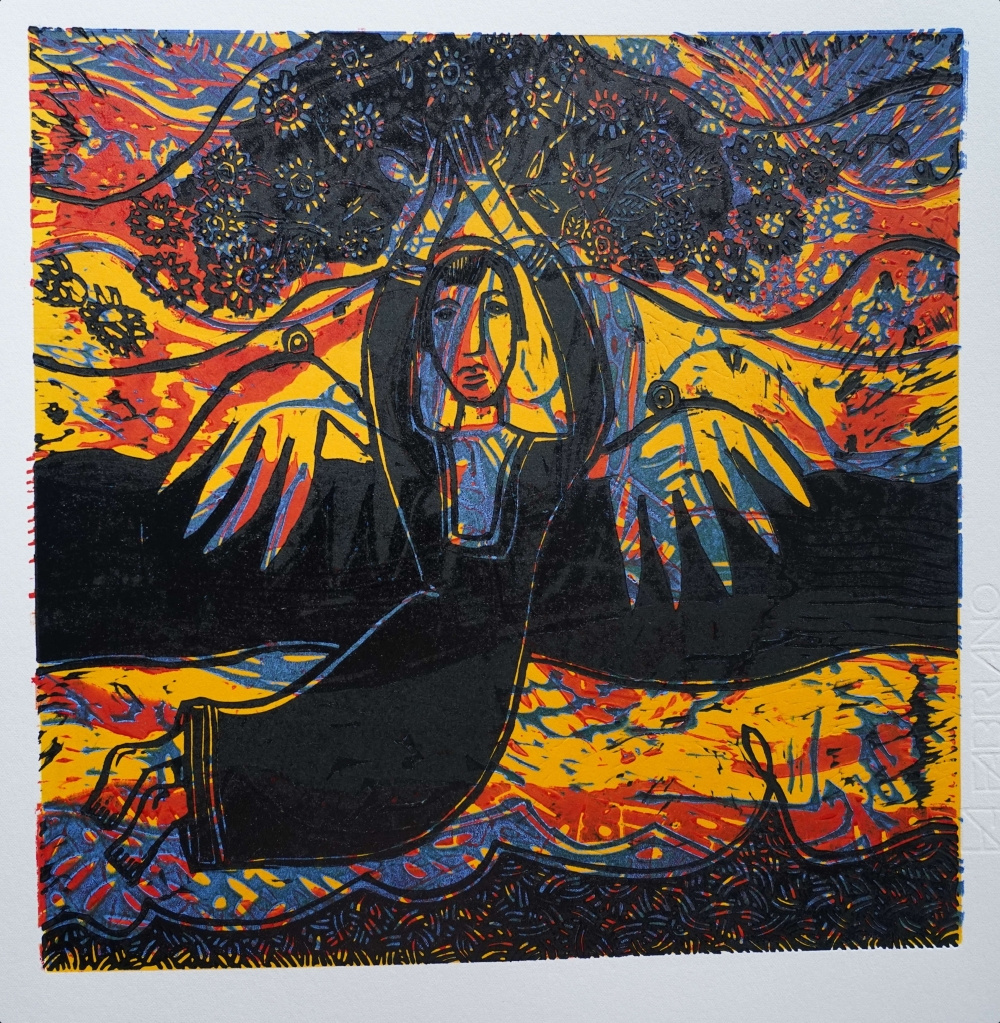 Anioł. Linoryt barwny. 30 x 30 cm. 2022 r.