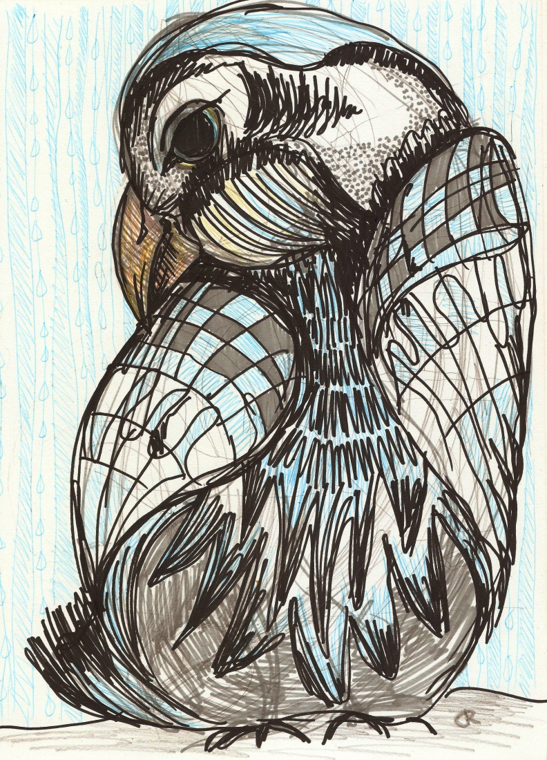 Deszczowy Ptak pod piórami daje schronienie słowom, lubi, gdy szukając połączeń i sensów leciutko go łaskoczą. Od tego pióra robią się bardziej puszyste i kolorowe. A gdy po deszczu prostuje skrzydła - wychodzą spod nich wiersze :)