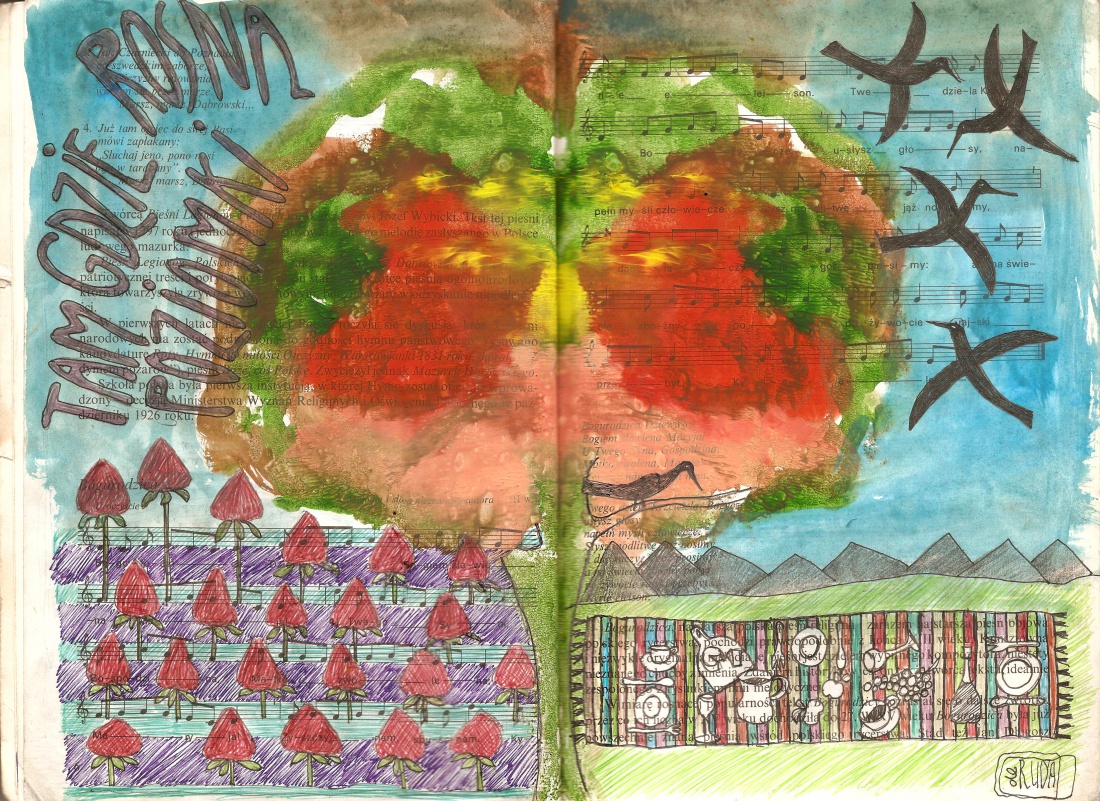 [kolorowe długopisy, akwarela]