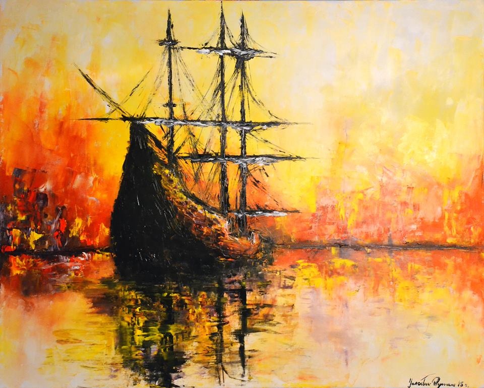 "Z cyklu Fregaty"........ Autor: Jarosław Rymarz..... Olej na płótnie 100 x 80 cm.... Szpachla malarska.... 2013 r............... "From the series Frigates".... Author: Jarosław Rymarz.... Oil on canvas 100 x 80 ...... Scraper.... 2013