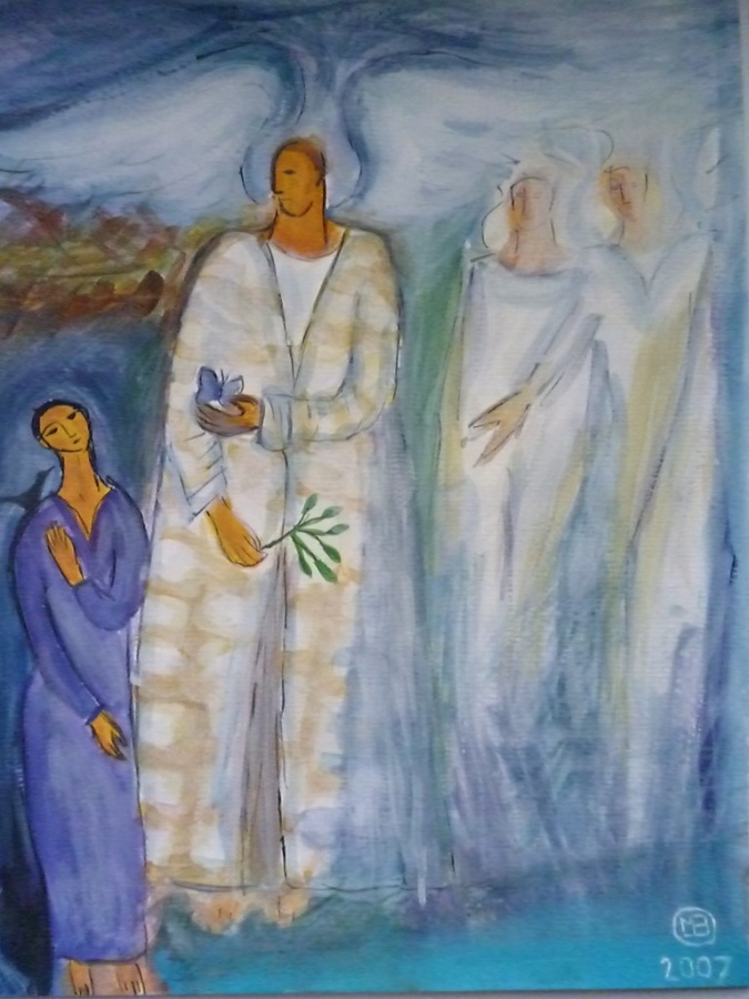 rajski bodyguard-2007 wys-28,5cm a szer-21cm:)papier-akwarele-pedzel:)(inspiracja;foto obrazu z gazety"wrozka"):)