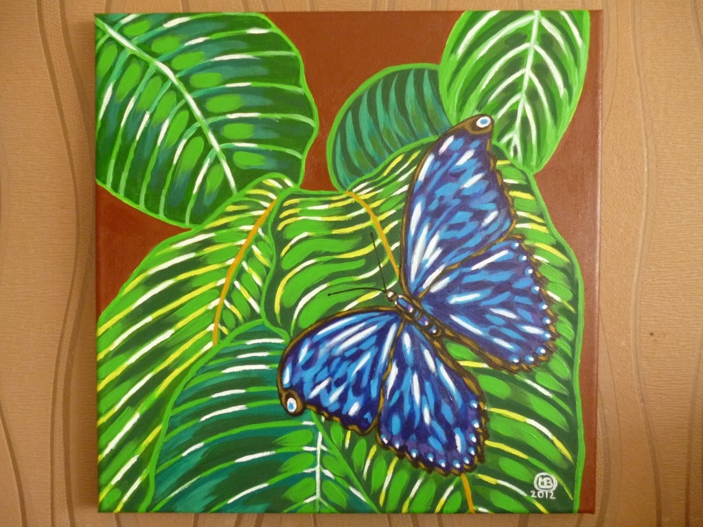 blue Veronika-2012:)wys-40cm a szer-40cm:) akryl-plotno-pedzel:)(inspiracja;z foto z internetu:)(motylka troche podrasowalam po swojemu:)Obraz ten dedykuje dla Veroniki chamaedrys L:):)wraz z wyrazami przyjazni ... :)Veroniko zycze ci duzo usmiechu i blekitu...serdecznie cie pozdrawiam:):)Wstawilam lepsze nowe foto motylka :)