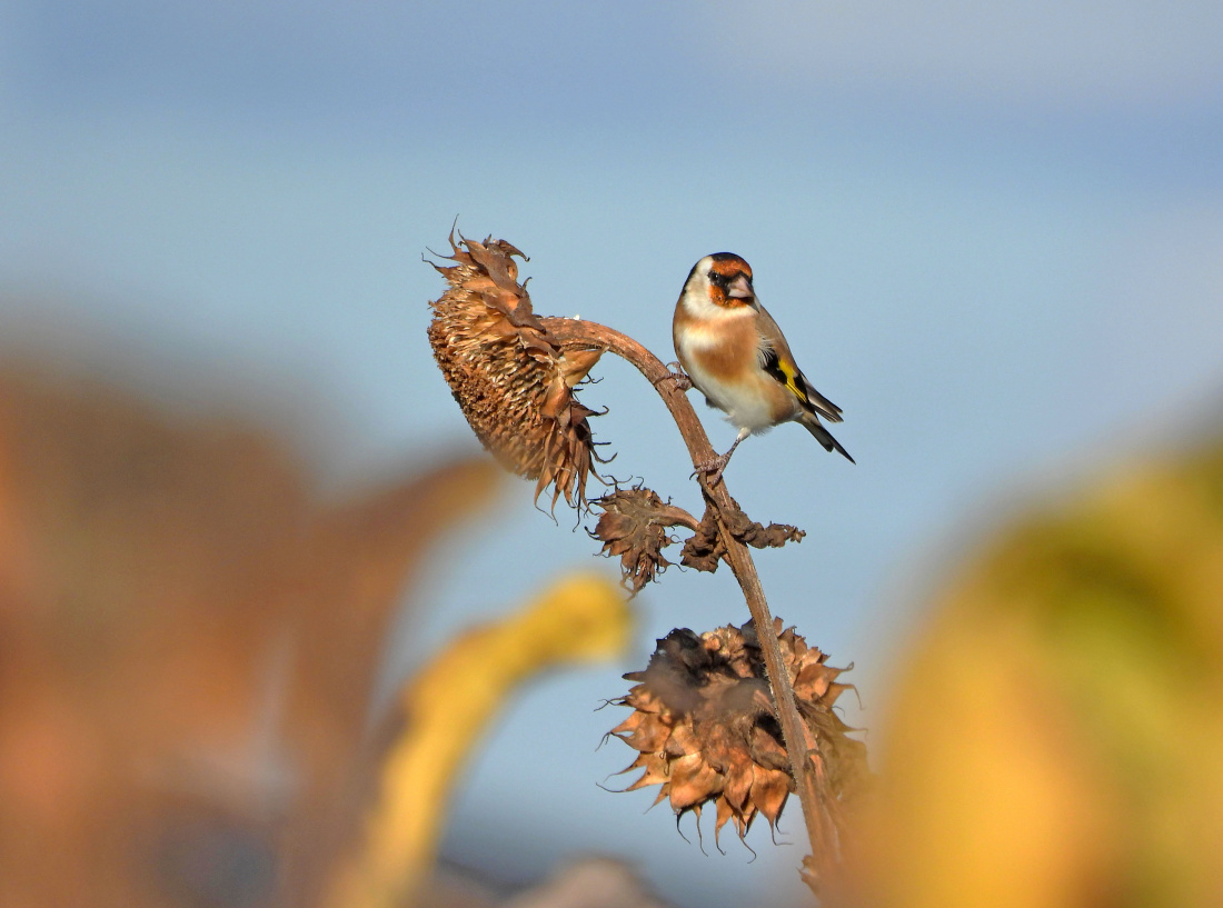 Ja już wystawiłam, chociaż wciąż biję się z myślami, czy dobrze im, znaczy ptaszkom, robię. Zimy poza chłodniejszymi epizodami, są w zasadzie tak łagodne, że zawsze obawiam się, iż pierwszy śnieg jest już tym ostatnim. Zdjęcie pochodzi z zapomnianego pólka słonecznikowego, gdyż większość ziaren była wyłuskana. Niedawno tam byłam, i w końcu je zebrano. Raczej z marnym plonem.