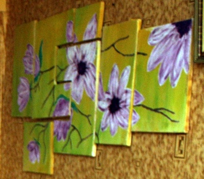 Ramy zaprojektowane przeze mnie, naciągnięte i wymyślone:) W rzeczywistości efekt znacznie lepszy. Zdjęcie zrobione z boku, ponieważ inaczej aparat nie mógł objąć całości, która zajmuje ponad 4 metry ściany:)